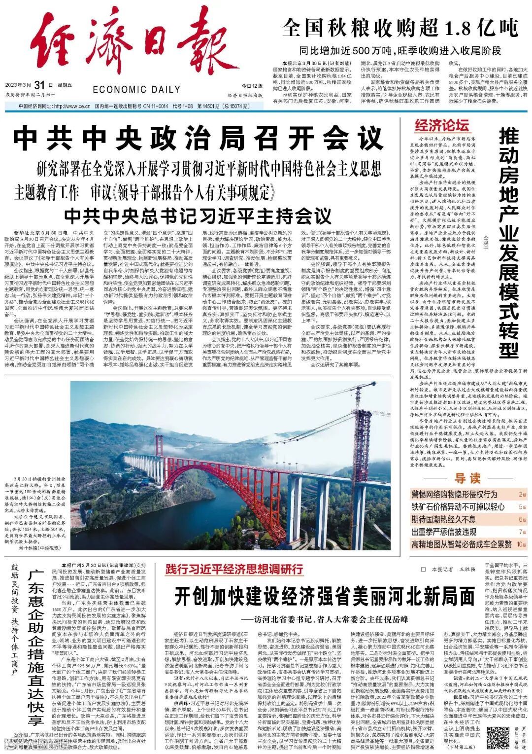 经济日报近日刊发深度调研报道《石家庄赶考》,以生动范例展现了石家庄干部群众牢记嘱托、笃行不怠的创新举措和丰硕成果。河北如何践行习近平经济思想,解放思想、奋发进取,开创加快建设经济强省美丽河北新局面,记者专访了河北省委书记、省人大常委会主任倪岳峰。