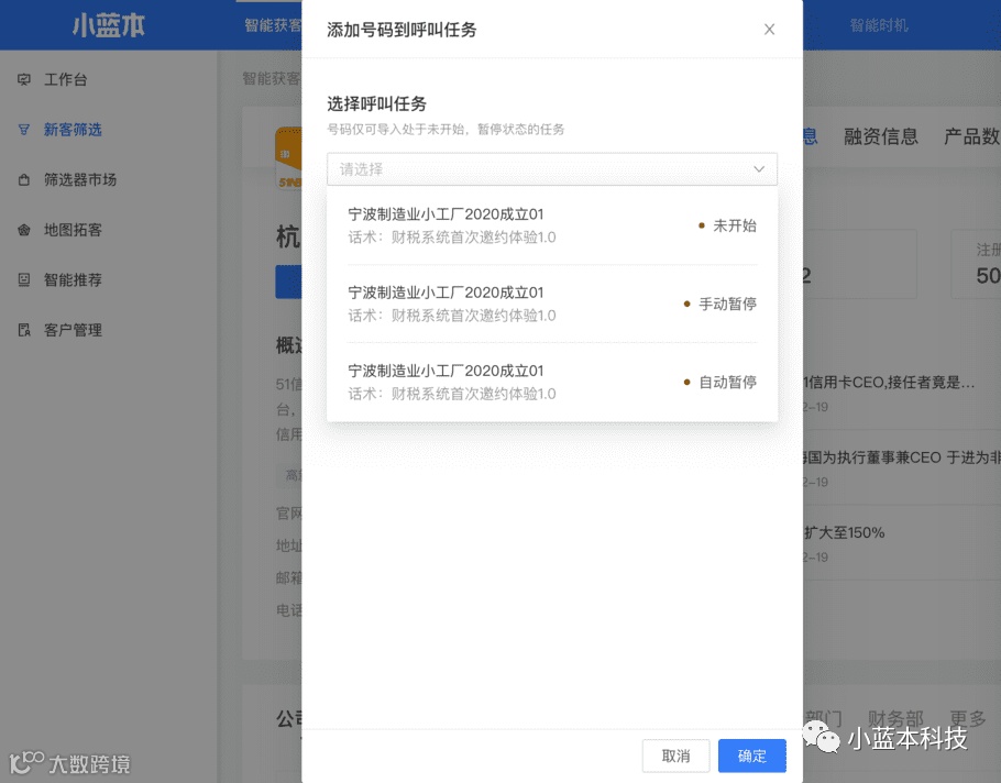 小蓝本科技成立于2019年,是一个智能销售增长云平台,致力于帮助3000万To B销售提升销售效能。