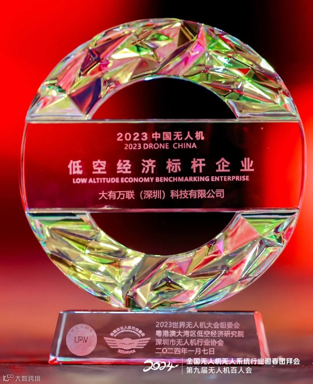 大有万联受邀参加大会,并荣获2023年中国无人机 · 低空经济标杆企业奖。