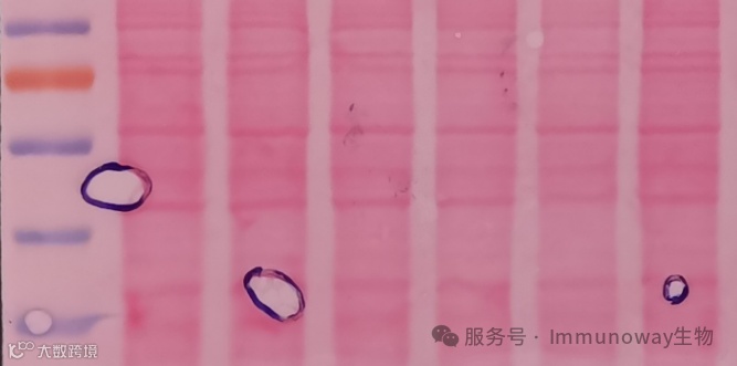 当转膜液有杂质或制备三明治时未充分赶走气泡,显色时会出现条带缺失或气泡印迹的情况。