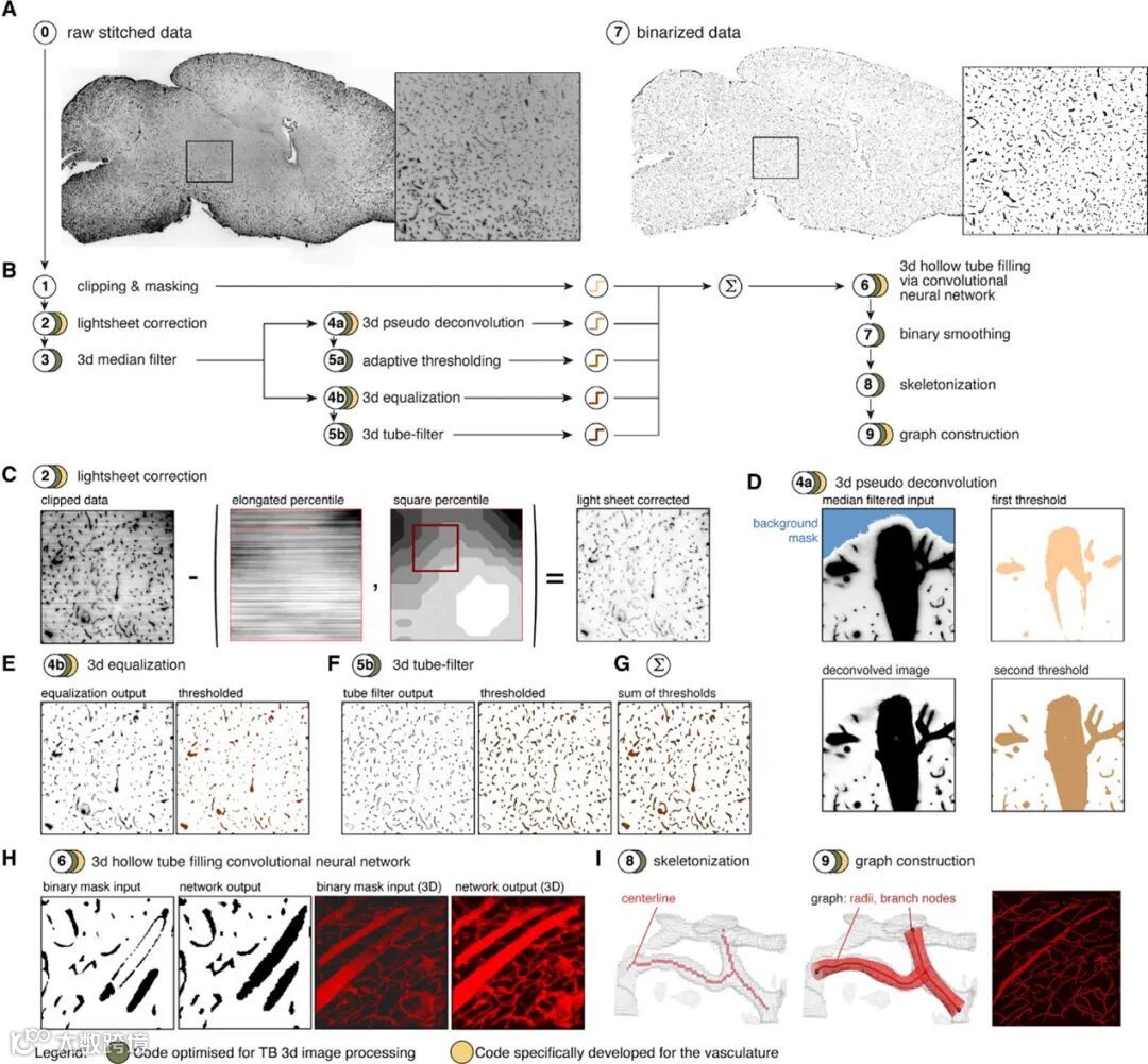 来自法国巴黎索博纳大学的Nicolas Renier的课题组在Cell上发表了题为Mapping the Fine-Scale Organization and Plasticity of the Brain Vasculature的文章。该研究开发了一种名为TubeMap的流程对TB级别的多通道图像进行分割,从而构建一亿多个血管段组成的可视化的血管图以进行后续分析。该流程通过免疫标记和组织透明化技术对血管进行标记,并解决了成像过程中的重复和伪影问题。研究发现,尽管毛细血管的密度在大脑不同区域差异显著,但它们到最近动脉或静脉的距离在整个大脑中保持一致。此外,研究人员还分析了先天性耳聋和缺血性中风两种病理条件下的血管重塑,发现血管网络的可塑性在不同模型中表现出不同的模式。
