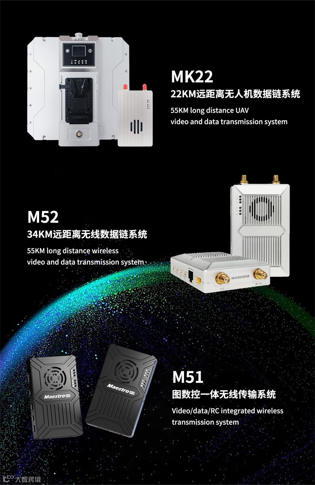 大有万联(深圳)科技有限公司是行业领先的国家高新技术企业,自成立以来一直专注于无线视频与数据传输细分市场的产品研发、生产和销售。所研发的无人机无线图传产品达到行业领先水平,并在无人机、机器人、应急通信、边防监控等领域批量应用,获得深圳市专精特新企业、创新型中小企业等殊荣,产品获得工信部型号核准、CE、FCC等认证,远销海内外市场。