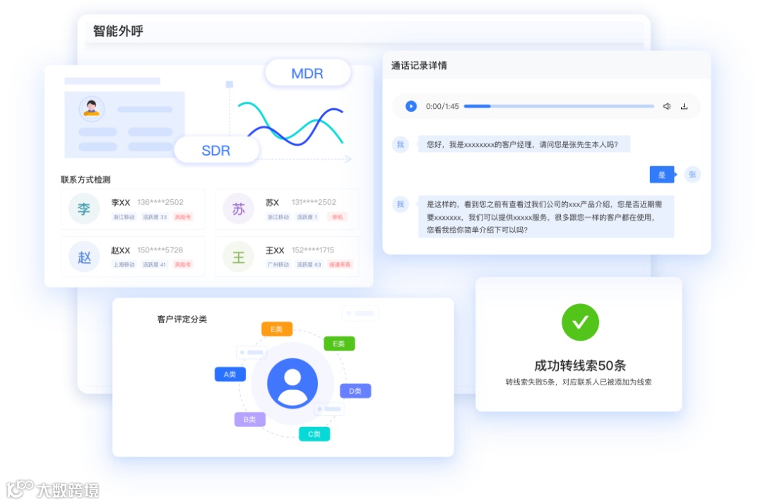 另外,通过小蓝本外呼系统能够智能评定高意向客户,及时推送给业务人员,作进一步跟进,这切实帮助一财金税做到了重复、繁琐的工作交给 AI 完成,降低无效沟通成本。
