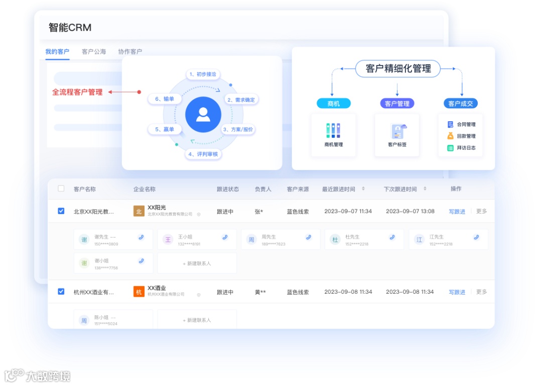 小蓝本智能销售线索云帮助企业实现“寻找客户→触达客户→培育客户→转化客户”全流程销售自动化和标准化,销售数据和业务流程可视化,从而提高销售效率和准确性。例如,在前期销售线索的分配,未转化线索再分配等自动化管理,有效避免线索资源浪费;销售中期阶段,能够全面展现销售对线索的从头到尾的跟进情况,并能提醒销售及跟进反馈,避免跟丢、跟漏客户;成交后对客户进行标签管理和长期维护!