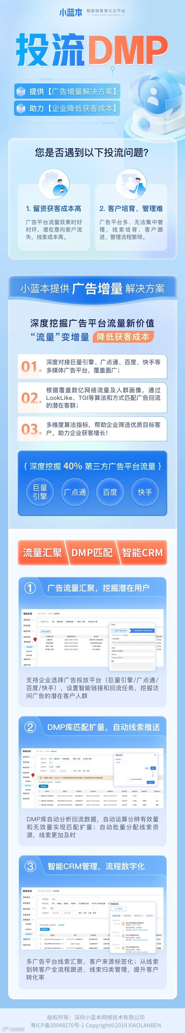 小蓝本通过大数据和人工智能技术为To B企业提供从潜客挖掘、商机触达到客户转化及管理,一站式全流程的智能销售解决方案,助力企业全面提升销售效率和销售业绩,致力于帮助3000万To B销售提升销售效能。