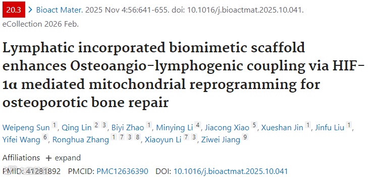 Lymphatic incorporated biomimetic scaffold enhances Osteoangio-lymphogenic coupling via HIF-1α mediated mitochondrial reprogramming for osteoporotic bone repair