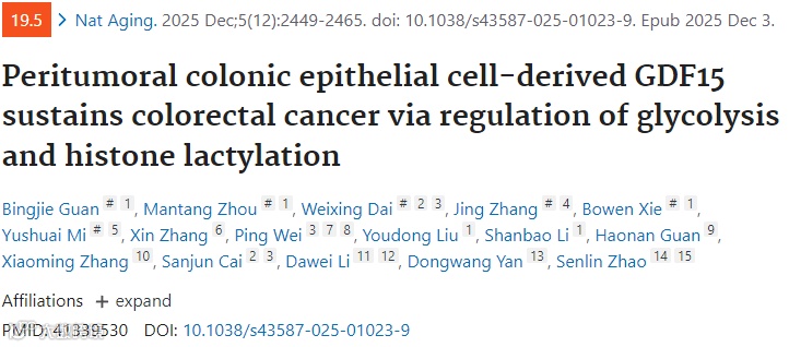 Peritumoral colonic epithelial cell-derived GDF15 sustains colorectal cancer via regulation of glycolysis and histone lactylation