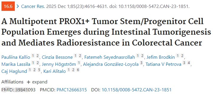 A Multipotent PROX1+ Tumor StemProgenitor Cell Population Emerges during Intestinal Tumorigenesis and Mediates Radioresistance in Colorectal Cancer