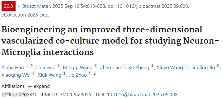 本研究构建了一种“血管化神经-免疫”类器官共培养新模型:作者先利用人胚胎干细胞诱导形成自组装的“人血管类器官”(hVOs),其内含CD31+内皮网络、PDGFRβ+周细胞及αSMA+平滑肌细胞,具备管腔与基底膜结构;随后将hVOs与人诱导神经干细胞(hiNSCs)及M0/M1/M2型小胶质细胞共嵌入径向排列的丝蛋白支架-胶原/基质胶复合体系,形成三维“圆环-中心”几何构象。该结构使神经突起沿径向孔道定向延伸并与中央血管网融合,重现灰-白质样分区。实验显示,M2型小胶质细胞通过高表达SDF-1激活CXCR4,一方面促进hVOs成熟并上调BDNF分泌,另一方面间接驱动hiNSCs向功能性神经元分化与突触形成;M1型则呈现抑制效应。此模型首次在完全人源三系类器官体系中揭示SDF-1/CXCR4介导的免疫-血管-神经互作轴,为神经发育、神经退行性疾病药物筛选及再生医学提供了可灌注、可观测、可干预的高仿生类器官平台。