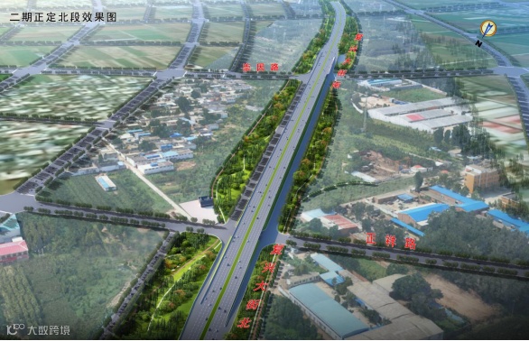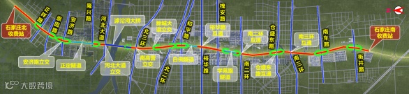 复兴大街市政化改造工程,本次改造按照设计速度100公里/小时、双向8车道城市快速路标准进行设计建设,标准路基宽度34.5米。全线新建大桥13座,总长4436米,其中滹沱河景观特大桥2300米,泊水公园景观大桥605米;新建地下隧道3座,总长5.02公里,其中正定古城段隧道2.51公里,白佛隧道1.23公里,学苑路隧道1.28公里;全线共设置互通立交11座(改造现有互通立交3座、新建互通立交4座、预留互通立交4座),增设出入口匝道16对(预留1对)。同时,结合区域交通需求,在滹沱河北大堤至月牙路段与和平路至南二环段局部增设辅路系统,辅路总长约5.3公里,按照设计速度50公里/小时、双向四车道的城市主干路标准建设,两侧设置人非慢行系统。