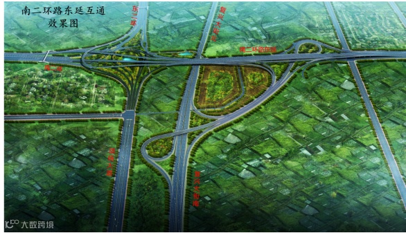 在确保不断交的情况下,2022年3月26日,复兴大街与新城大道互通立交、复兴大街与南二环东延线互通立交开工建设,4月底全面开工。