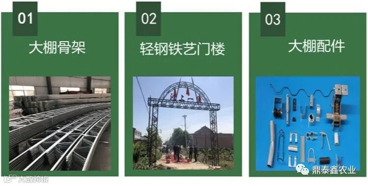 主要生产各种类型温室大棚骨架、大棚配件,各种大棚资材、大棚配件的加工可根据客户需求定制、建设、零售、批发。为您提供一站式服务。公司生产设备齐全可以代加工钢材,定制、加工、轻钢铁艺门头、门楼、标示牌。