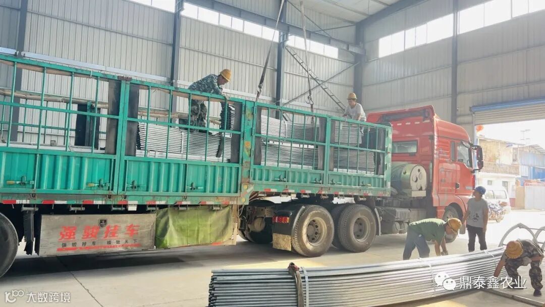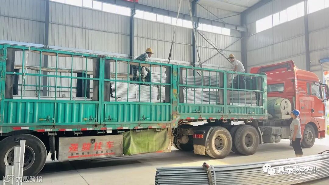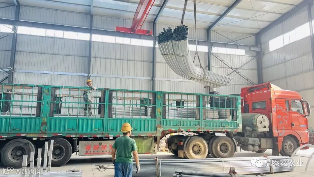 最近陕西阴雨连绵,加工厂一直在紧锣密鼓的生产加工温室骨架、温室配件,以确保雨停后及时把材料装车发货。