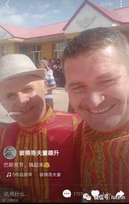 到了俄罗斯族的传统节日巴斯克节,董德升高兴得连发多条短视频:身着鲜艳民族服饰的董大叔跟着节拍“笨拙”地手舞足蹈。