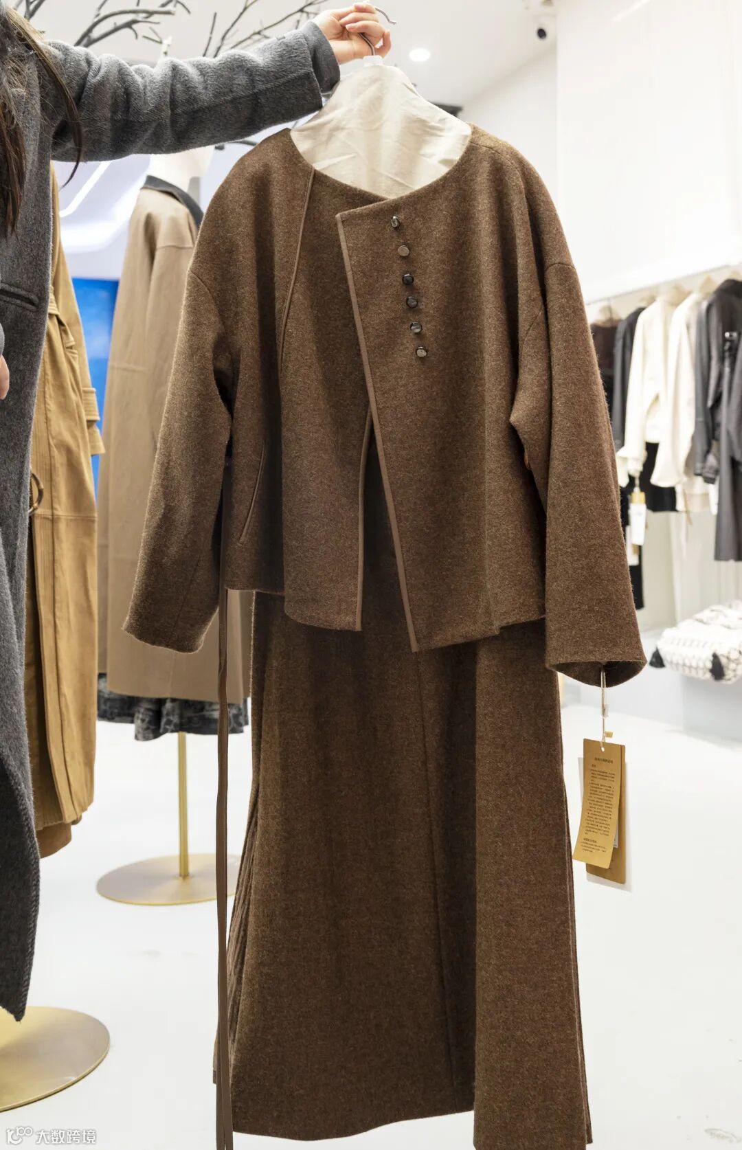 搭配同风格擦色切尔西短靴&油蜡皮月牙包,时尚不出错,出门逛街、约会非常实穿!还有短款圆领羊毛外套+半身裙可供选择,不一样的风格~