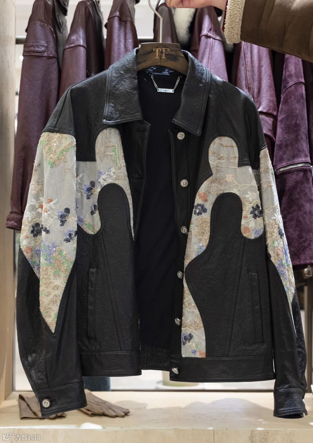 国风刺绣拼接皮夹克,时尚设计款