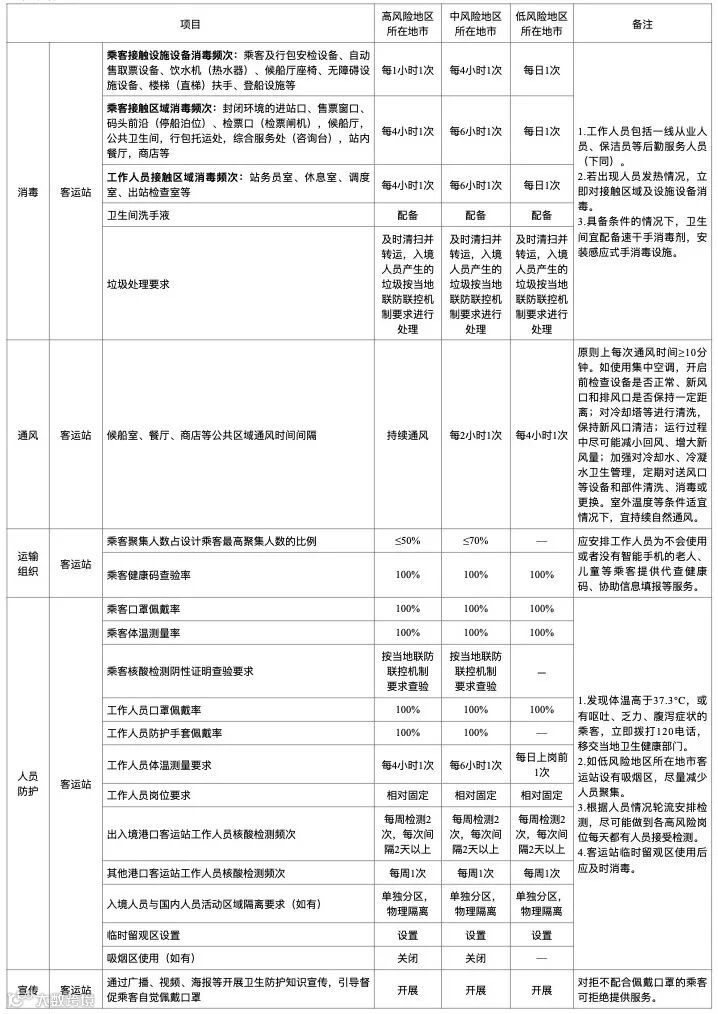 1. 客运车辆起讫地和中途停靠客运站点所在地风险等级不一致的,按就高原则执行防疫要求。