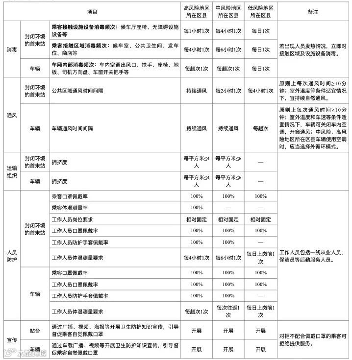 注:原则上暂停中风险、高风险地区所在城市跨城公交服务,并对途经中风险、高风险地区的城市公交线路实施甩站运行。