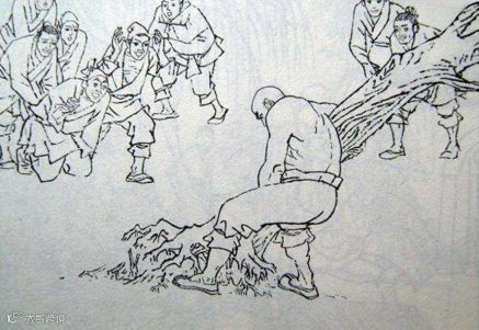 鲁智深这花和尚可不是吃素的,何况这事关系到自己的KPI考核和职业前途。所以,他当即给这些泼皮破落户来了个下马威,先是把那两个企图将他推落粪窖的泼皮反踢进粪窖,继而使出勇力,倒拔了一棵绿杨树,这才彻底干服了这帮泼皮,使得菜园子得以恢复正常运营。