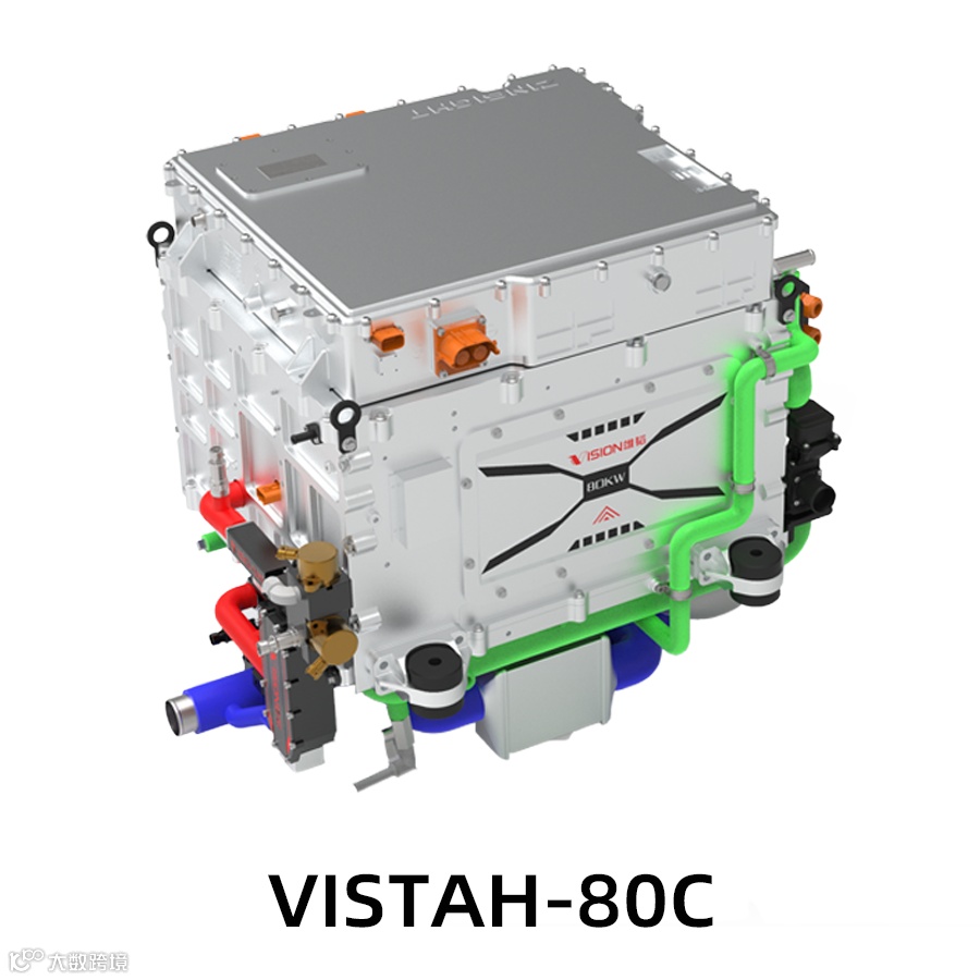 VISTAH-80C:燃料电池发动机一体化集成,系统整体性提高;自研引射器与分水器集成的氢循环系统应用,氢耗降低5%。