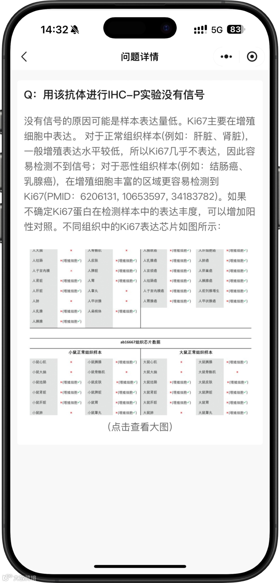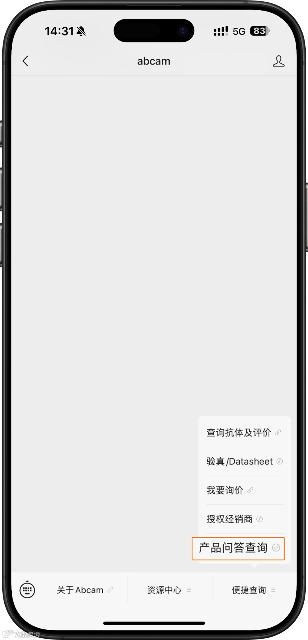 abcam 公众号下方菜单栏:便捷查询 → 产品问答查询 → 🔍检索框输入货号 → 点击相关问题查看解答