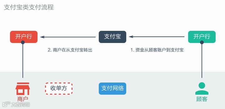 没错,这里面没有银联和收单方啥事,支付宝取代了银联,对商户来说支付宝就是收单方。(严格的说,支付宝并没有完全取代银联,支付宝来不及直连的银行还是通过接入银联来提高自己银行覆盖率的。)