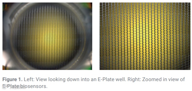 E-Plates 是一次性使用的设备,用于在 xCELLigence 仪器上进行基于细胞的检测。如图 1 所示,金生物传感器覆盖了约 80% 的孔底。这种设计可以同时监测大量细胞,对细胞物理特性的动态变化具有高灵敏度。