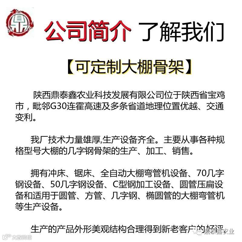 制作效率高,根据棚的跨度,棚架管直径、壁厚可任意调节。
