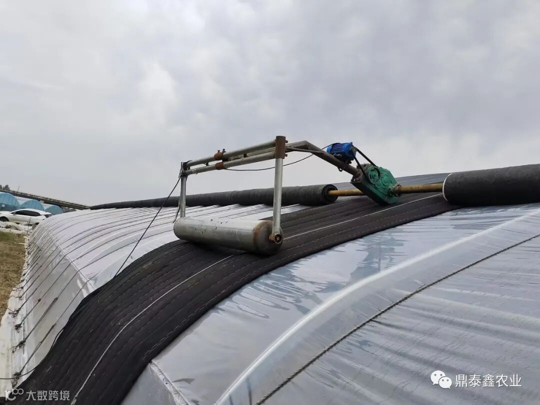 10、安装卷帘机后,草苫上必须盖附薄膜,以免草帘受雨雪淋湿后,造成卷帘机超负荷工作而损坏。草帘卷起后支架上方向一侧倾斜时应及时调整,否则活节扭断,导致支架歪倒。