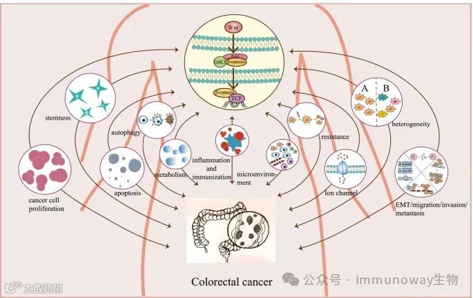 WNT信号转导级联与许多生化过程相关,包括癌细胞增殖、干细胞、凋亡、自噬、代谢、炎症和免疫、微环境、抗性、离子通道、异质性、EMT/迁移/侵袭/转移等。突变的Wnt途径会导致多种生长相关病理和癌症。