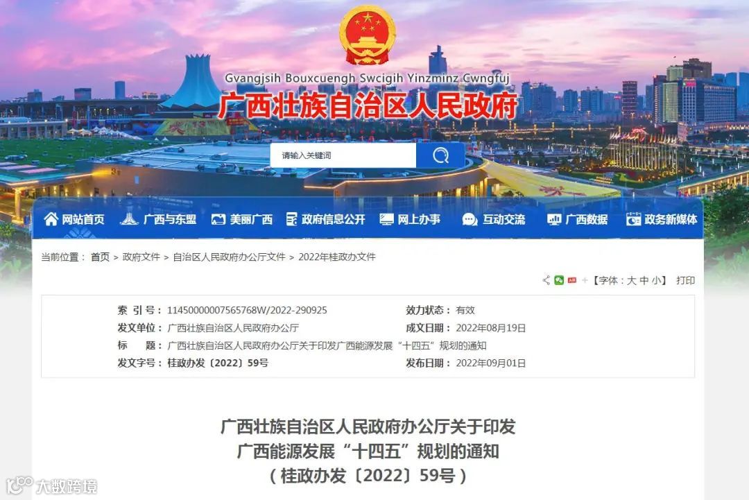 9月1日,广西能源发展“十四五”规划印发。