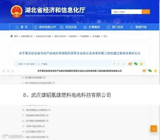 近日,湖北省经济和信息化厅发布第五批全省支柱产业细分领域隐形冠军企业拟认定名单,武汉雄韬氢雄被评定为湖北省第五批支柱产业细分领域隐形冠军示范企业。