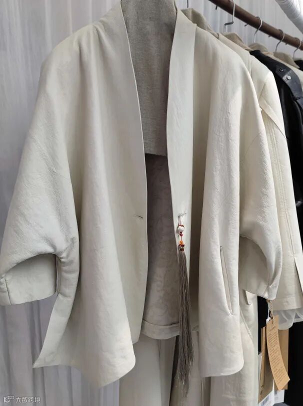 衣领、门襟、袖子均采用毛边工艺