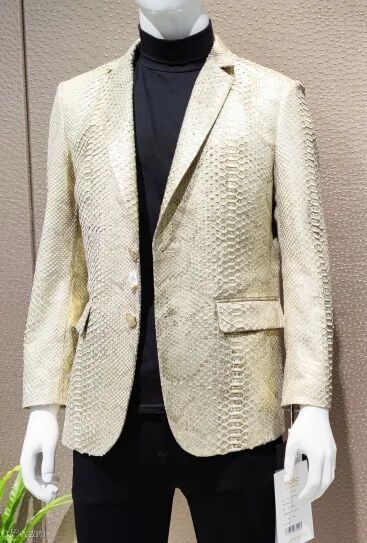 高品质金色蟒蛇皮西装 纽扣足银包边