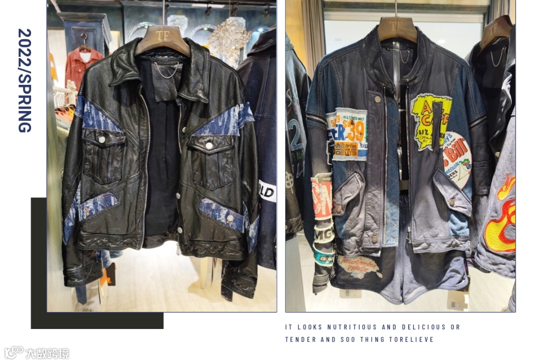 水洗复古皮衣夹克 搭配小面积牛仔拼接