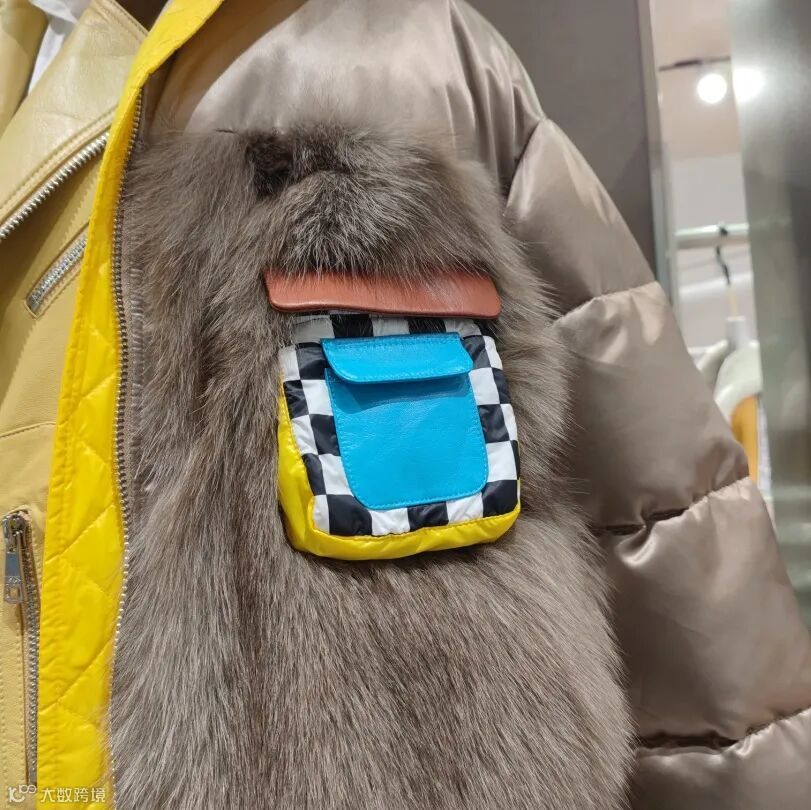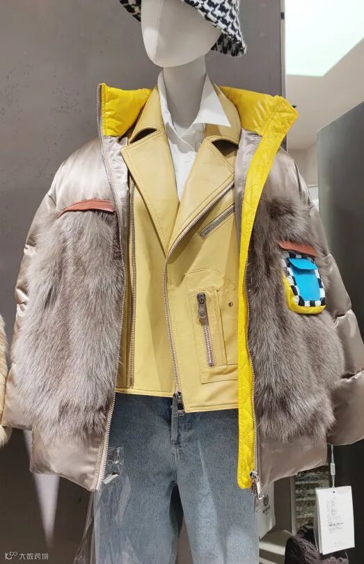 超短款修身机车皮衣×短款羽绒狐狸毛蓬松外套