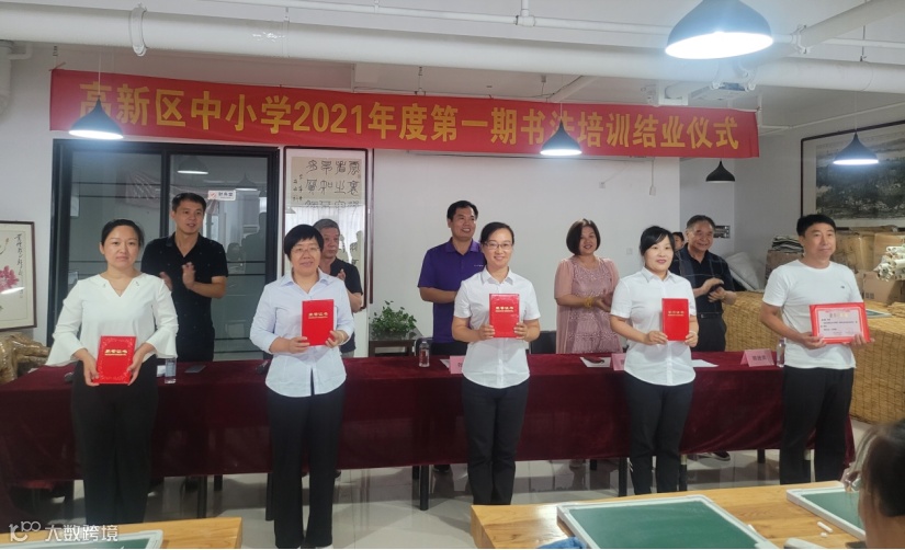 2021年7月18日上午,在河北省书法考级中心举行了高新区中小学2021年度第一期书法培训班结业仪式。本次培训由高新区文教局和省级书法考级中心联合举办,全区280名中小学教师参加培训并通过考核验收。区文教局局长张振华出席结业仪式并讲话。