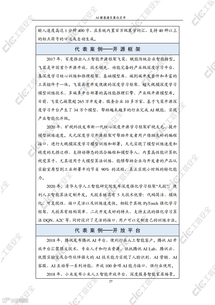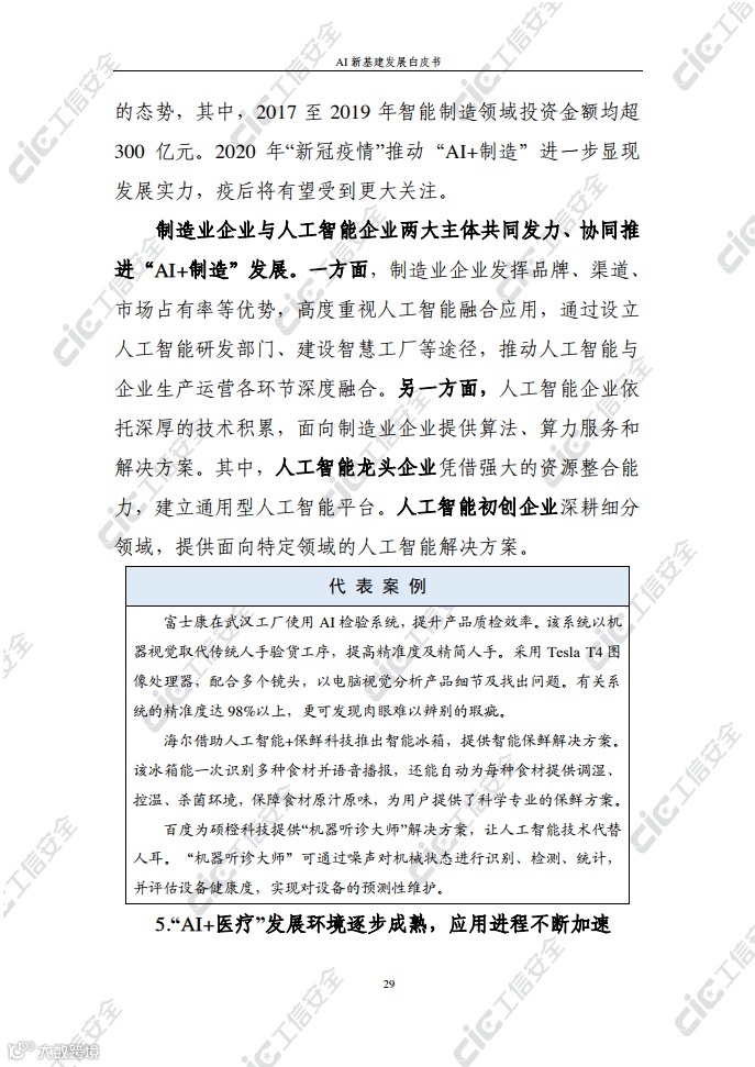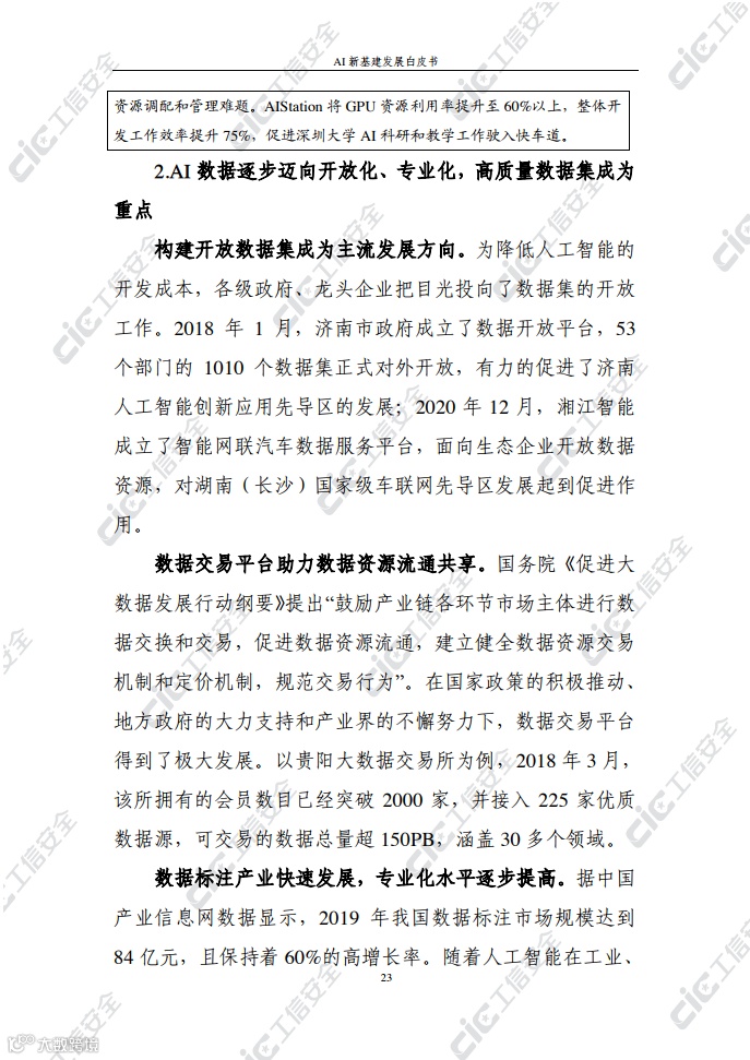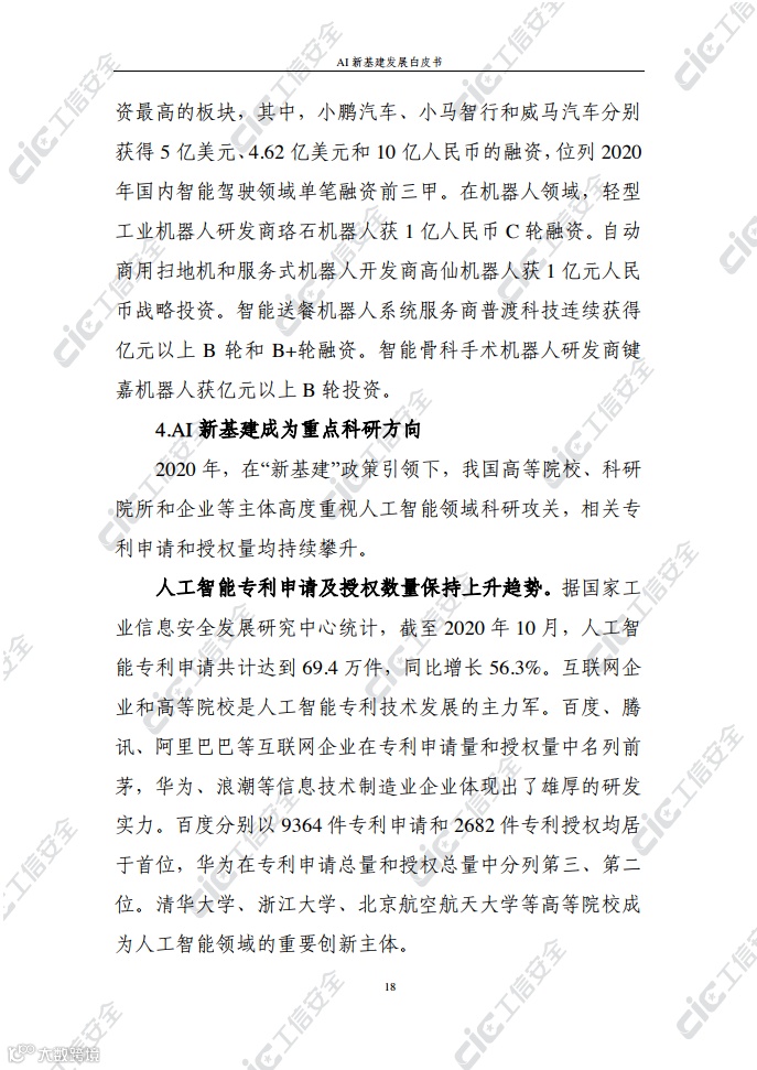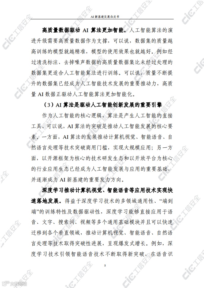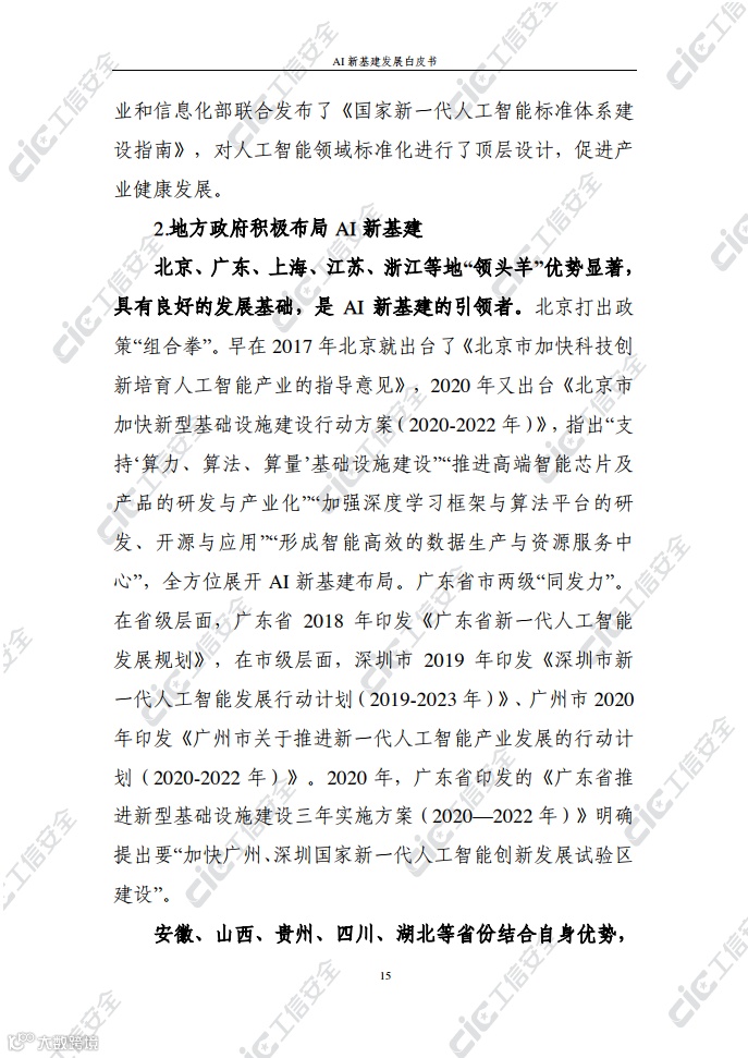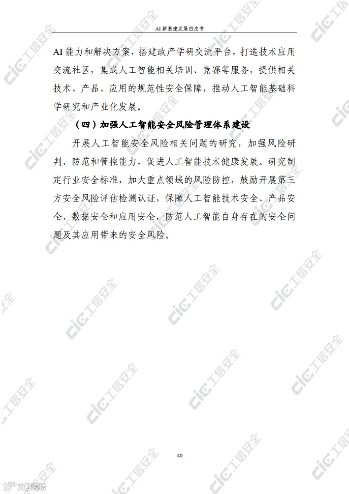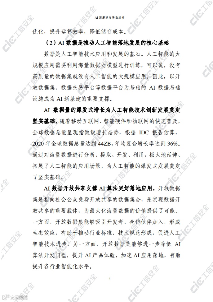 在此背景下,国家工业信息安全发展研究中心在跟踪积累和广泛调研的基础上,编写了《AI新基建发展白皮书》(以下简称“白皮书”)。白皮书梳理了AI新基建的概念内涵、基本属性、主要作用,探究了AI新基建的总体态势及发展现状,剖析了AI新基建发展面临的挑战并提出对策建议,旨在为各界推动AI新基建发展提供决策参考。