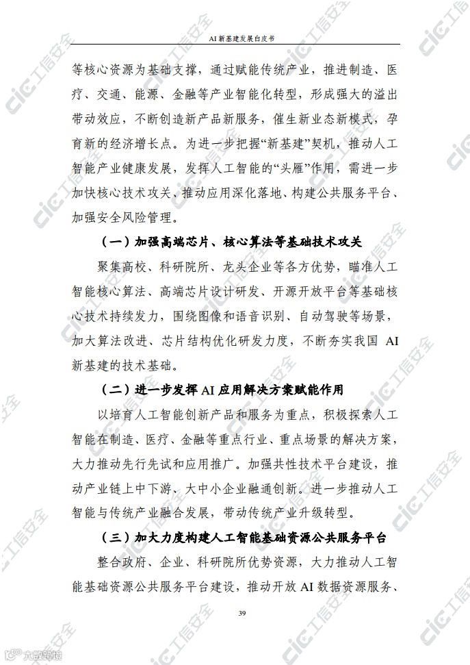 白皮书建议,为应对我国AI新基建在技术、数据、融合、安全等方面面临的挑战,应加快核心技术攻关、推动应用深化落地、构建公共服务平台、加强安全风险管理,进一步发挥AI新基建的技术赋能作用和公共基础作用,驱动产业转型升级、助力经济高质量发展。