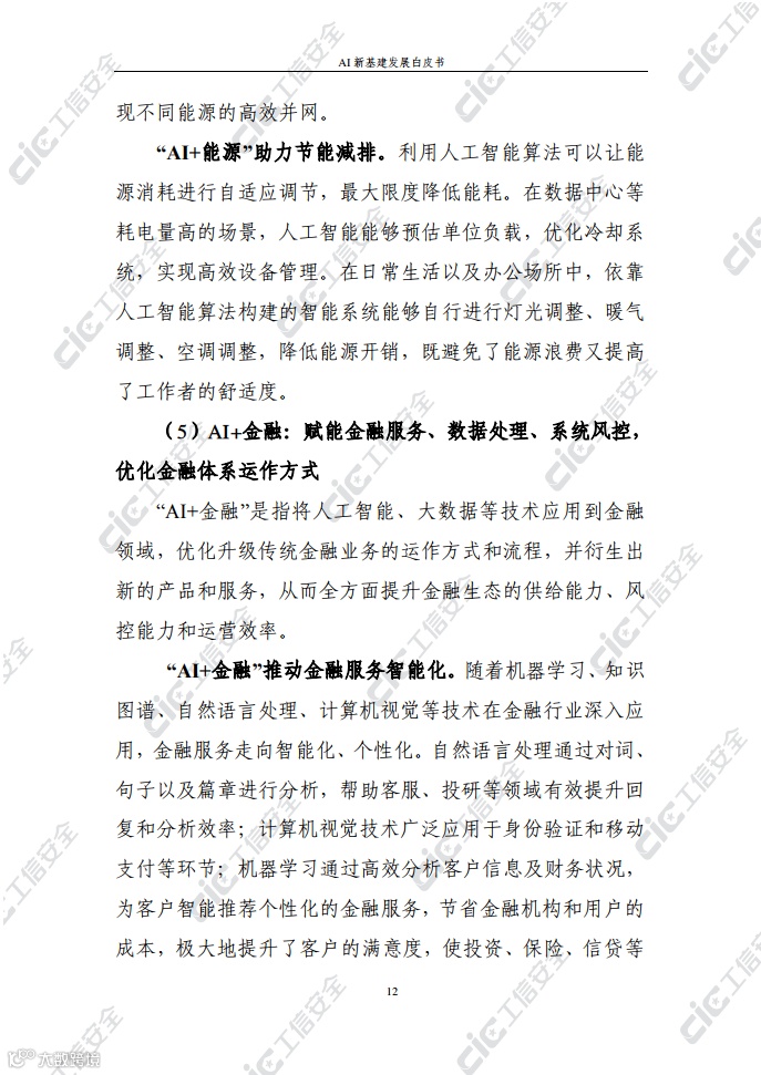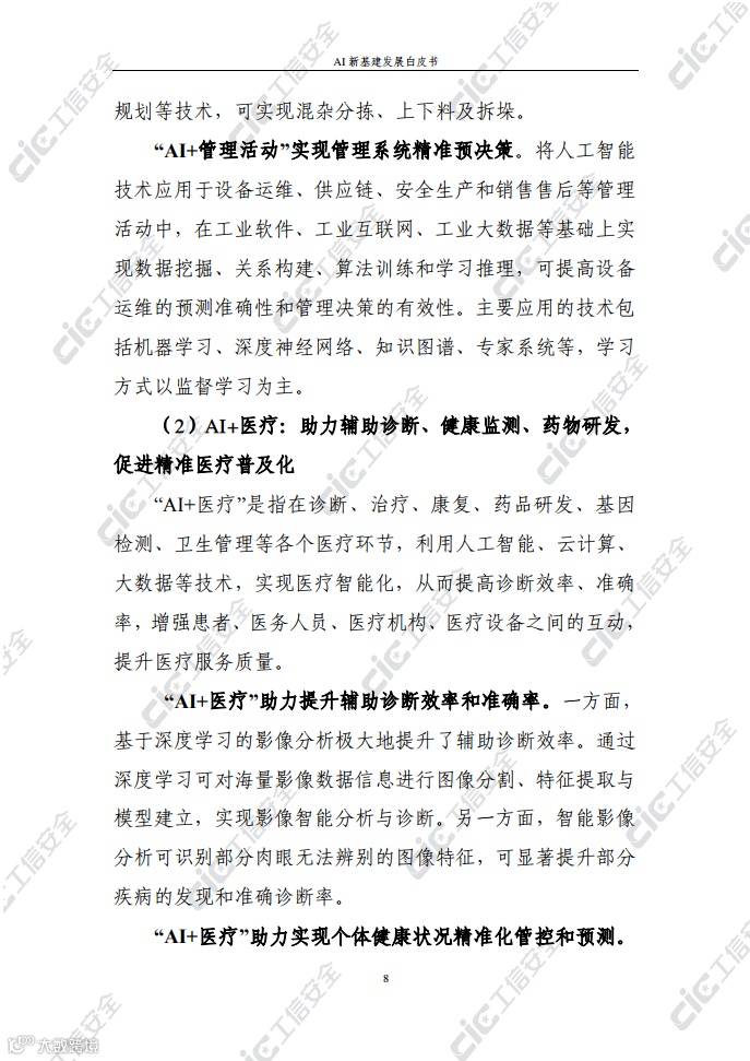白皮书认为,AI新基建是以算力、数据、算法等资源为基础支撑,以智算中心、公共数据集、开源框架、开放平台等为主要载体,赋能制造、医疗、交通、能源、金融等行业的基础设施体系,具有“新基建”的公共基础性和“人工智能”的技术赋能性。
