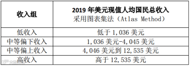 按照世界银行2020年7月1日发布的最新划分标准,高收入国家是指按现价美元计,人均国民总收入不低于12536美元的经济体。由于中国的国民总收入与GDP数值十分接近,在计算时可以替用。