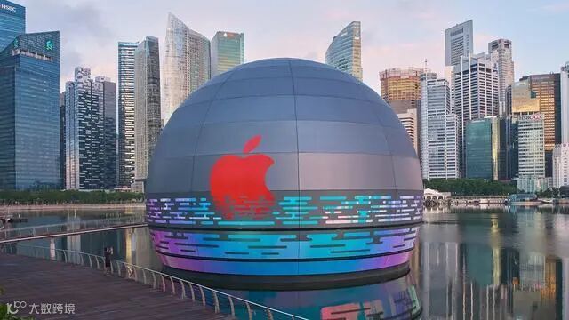 苹果在新加坡建世界首个球形水上漂浮零售店
