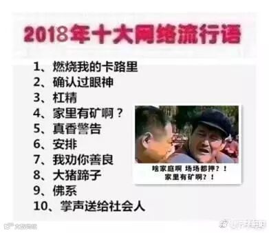 最后这张才是压压心中的2018网络流行语。今年杨超越算是红得发紫,虽然不是C位出道,但是人气不输孟美岐、吴宣仪,一句燃烧我的卡路里更是让压压这个没看过101的人去听了她们的歌。另外,不管是娱乐圈的人还是我们,似乎都逃不过王境泽的真香定律,压压简直怀疑他是不是偷了美琪美雪的魔仙棒。