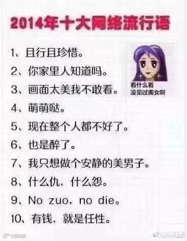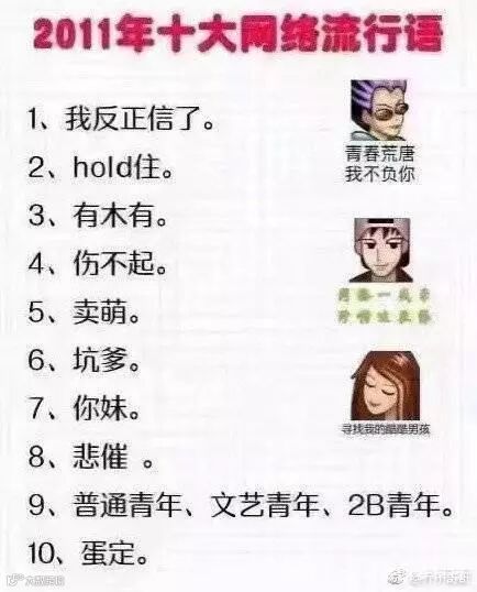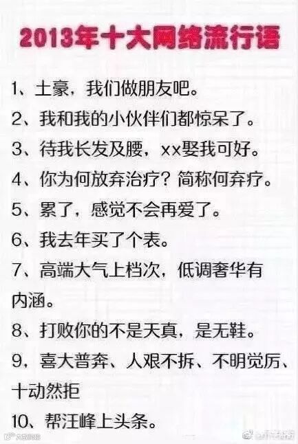 不过今天压压要和大家讨论的重点不是今年的流行语,毕竟有些词现在还是大家的口头禅,今天要讨论的是过去几年的流行语,现在再回过头去看,是不是觉得超级非主流,压压一点也不想承认这些词竟然曾经是我的口头禅。