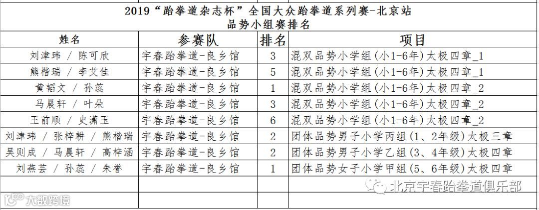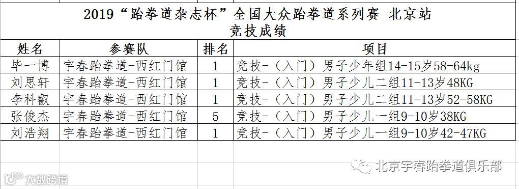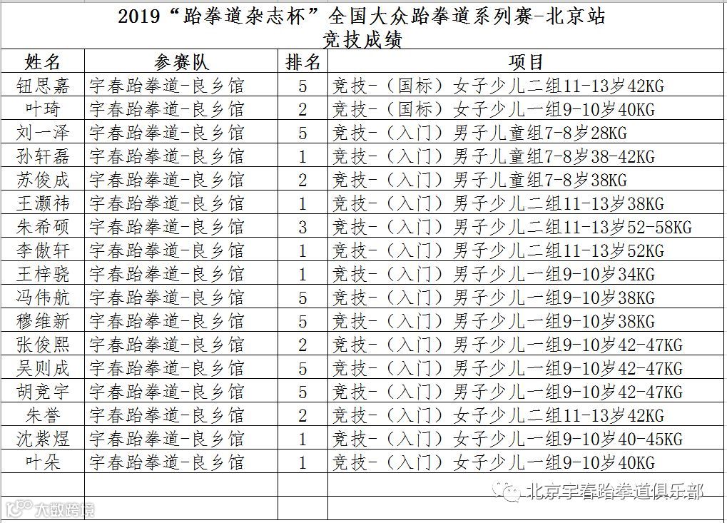 宇春跆拳道良乡教学部、西红门教学部于2019年6月7日参加“跆拳道杂志杯”全国大众跆拳道系列赛-北京站 暨第三届北京市跆拳道公开赛 并取得优异成绩
