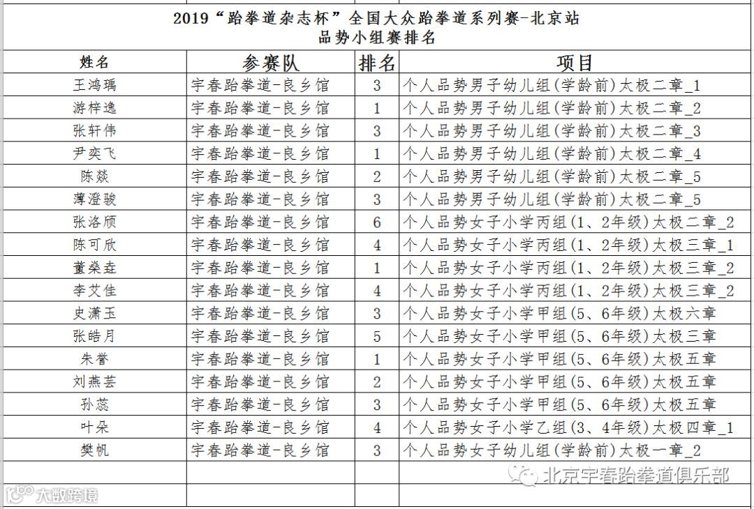 良乡教学部个人品势成绩公示: