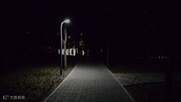 ▲感应路灯在人经过时变亮,节约能源