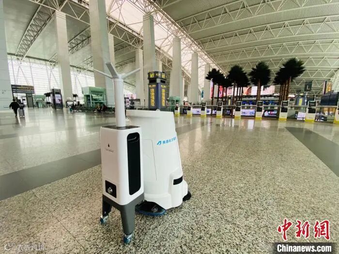 在白云机场一号航站楼出发候机区域,会见到了一款名叫“小艾”的新型智能清扫消毒机器人。它集杀菌消毒、垃圾清扫、灰尘收集等功能于一体,可根据设定好的路线进行精准运行,自动执行空间喷淋、扫地等清洁杀菌消毒工作。该款机器人可替代人工进入重点保障区域,不仅能够及时做好现场的保洁卫生,更主要的是,可以有效减少人员接触、杜绝交叉感染的风险。