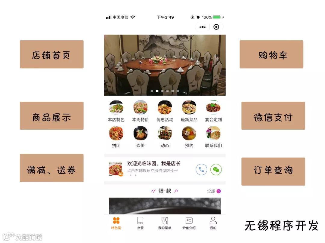 我们专业为餐饮商家量身定制开发微信小程序,