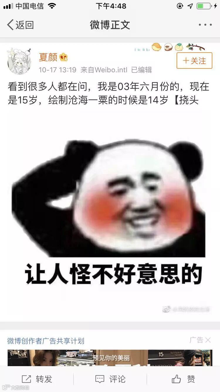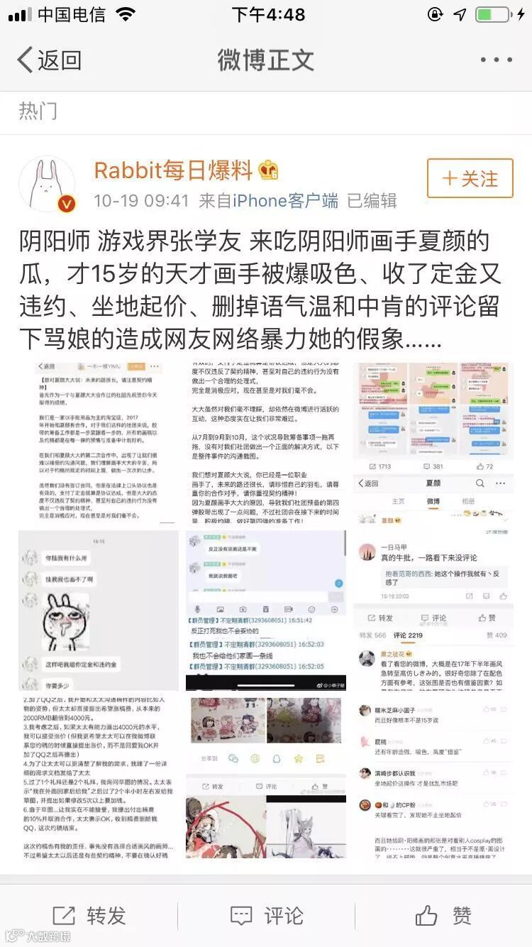 原来有个和夏颜合作的一家手账店铺爆出这位年轻的画师拖稿不画,坐地起价,拖稿三个月后从300直接涨到1000。这立马引起了第二波轰动,更多的网友爆出来这位画手抄袭,吸色,装病的黑历史,甚至质疑她的年龄造假。